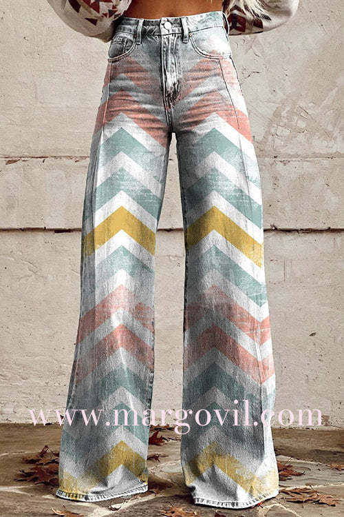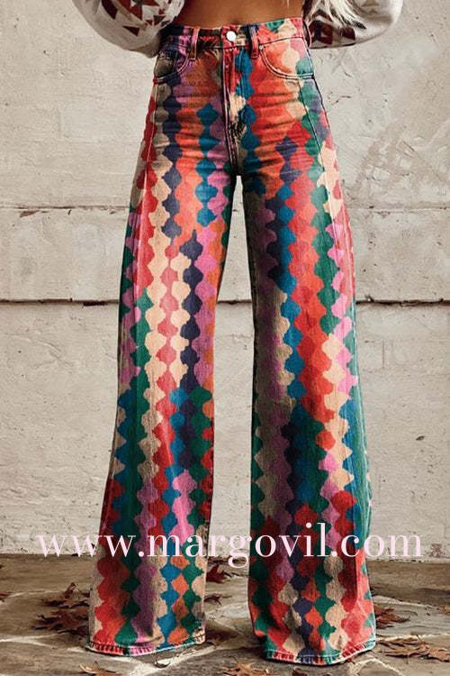 Margovil High Rise Color Block Printed Wide Leg Pants