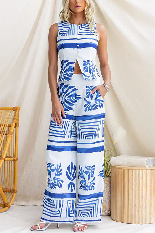 Sleeveless Crop Top and Wide Leg Pants Printed Set