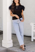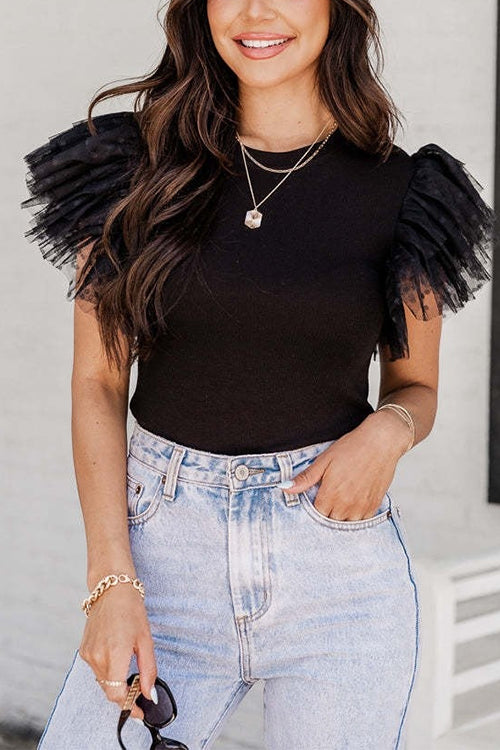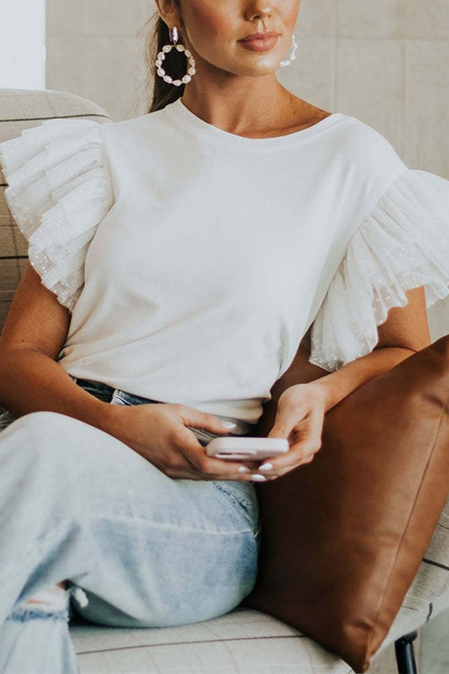 Margovil Round Neck Polka Dot Ruffle Short Sleeves Top