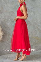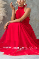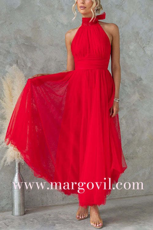 Margovil Bow Knot Halter Open Back Tulle Maxi Dress