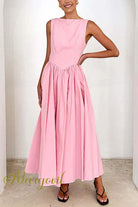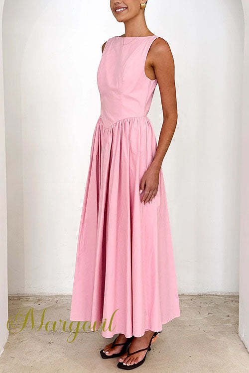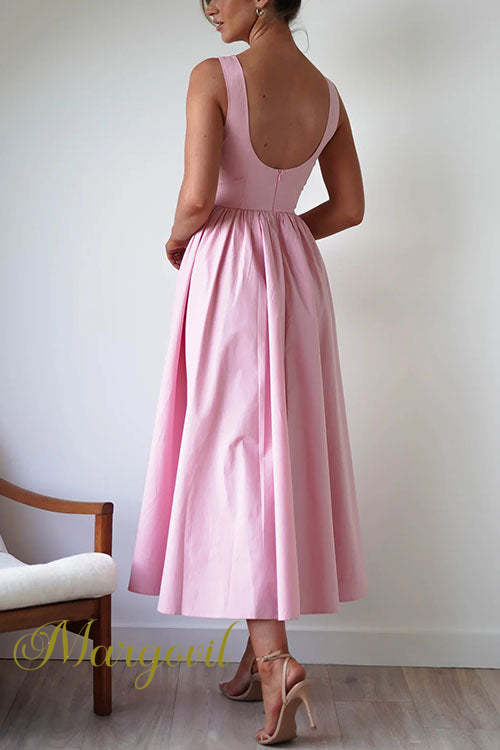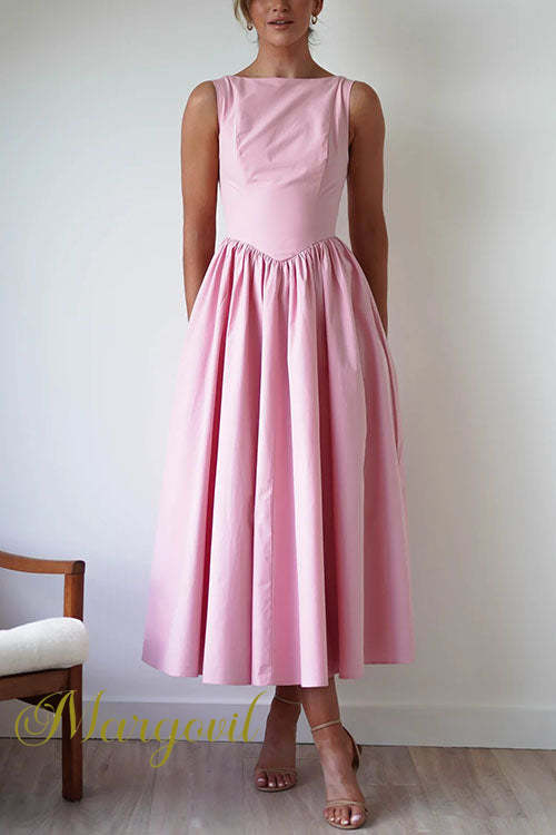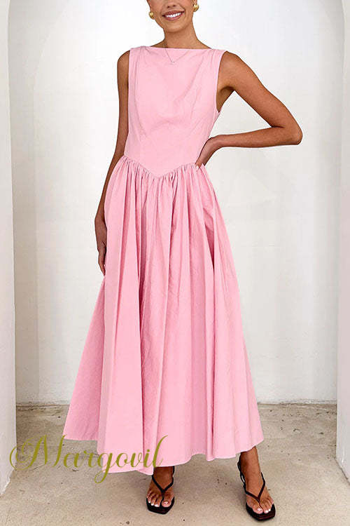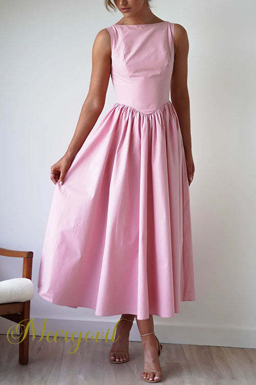 • Introducing the Margovil Sleeveless Open Back Swing Midi Dress! With its sleek sleeveless design, open back, and flattering swing midi length, this dress will have you feeling confident and stylish. Perfect for any occasion, you'll love how this dress makes you look and feel!