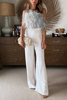 • Looking for a unique and stylish crop top? The Margovil Strapless Faux Feather top is just what you need! Featuring a strapless design and faux feather accents, it will elevate your outfit and make you stand out from the crowd. Perfect for any occasion, this top will give you confidence and a bold, fashion-forward look.