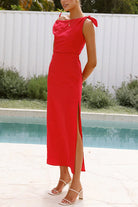 • Effortlessly chic, the Tie Knot Shoulder Side Slit Maxi Dress combines comfort and style in one stunning piece. The tie knot detail adds a touch of femininity, while the side slit adds a playful edge. Perfect for any occasion, this dress will make you feel confident and gorgeous.