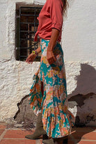 Margovil Vintage High Split Ruffle Printed Bodycon Skirts
