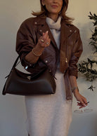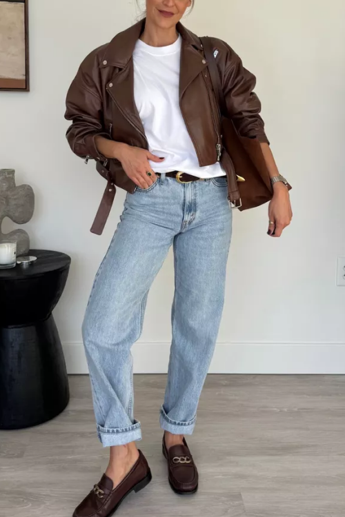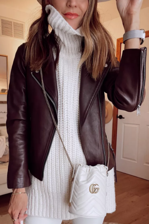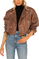 This vintage-inspired faux leather moto jacket features a stylish lapel and a front zip closure. The perfect addition to any outfit, it adds a touch of edginess and sophistication. Zip up and make a statement with Margovil!