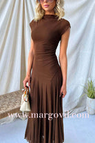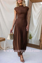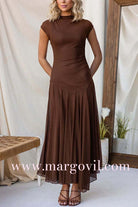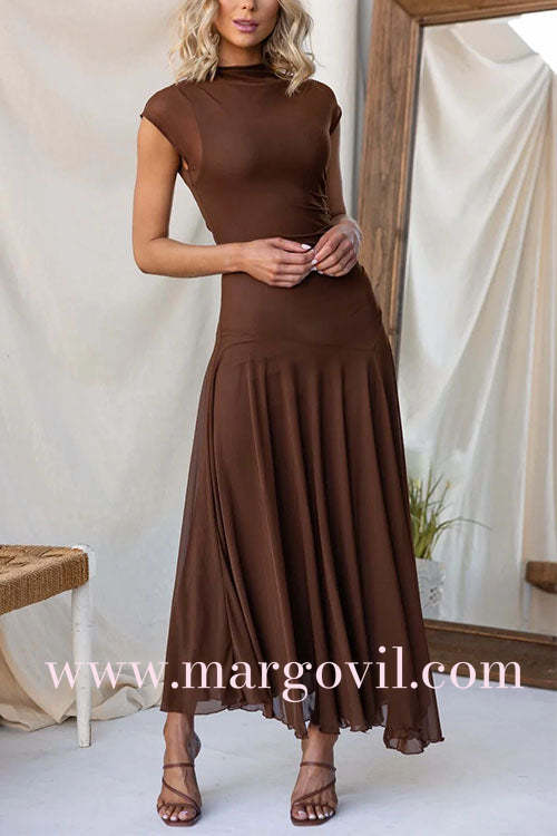Discover the perfect blend of sophistication and style with the Mockneck Cap Sleeves Ruched Mesh Maxi Dress. Its ruched mesh fabric enhances your silhouette, while the mockneck and cap sleeves add a chic, modern edge. Ideal for special occasions, this dress ensures you stand out with effortless elegance and comfort.