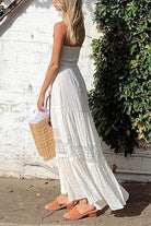 Margovil Strapless Tube Hollow Out Lace Splice Tiered Maxi Dress