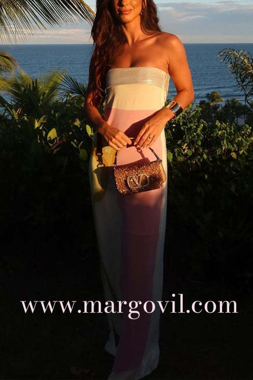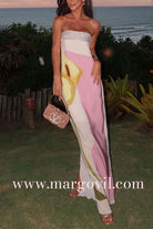 • Delight and dazzle at any party with our stunning Strapless Tube Color Block Printed Maxi Party Dress. Showcasing a sleek strapless design and eye-catching color blocking, this dress is sure to make you stand out. Perfect for any special occasion, it will have you feeling confident and beautiful all night long.