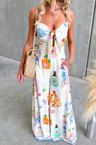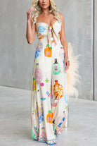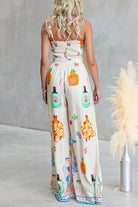 Adjustable Strap Tie Knot Front Unique Print Wide Leg Jumpsuit