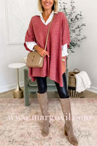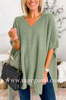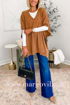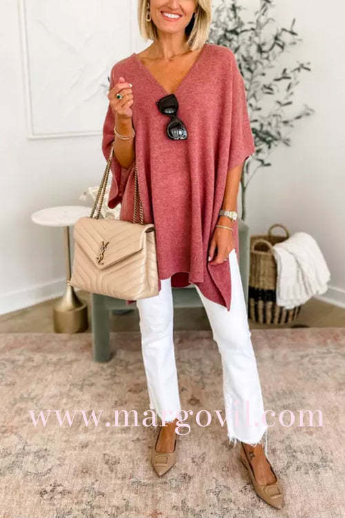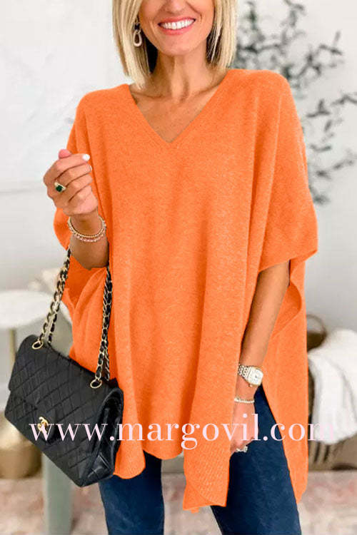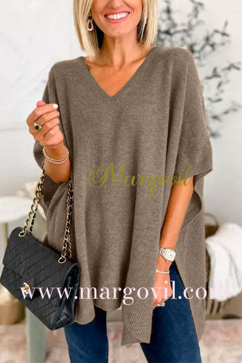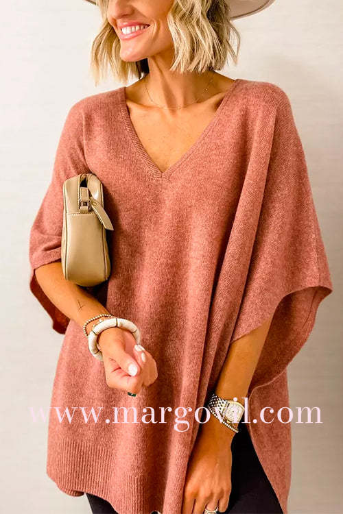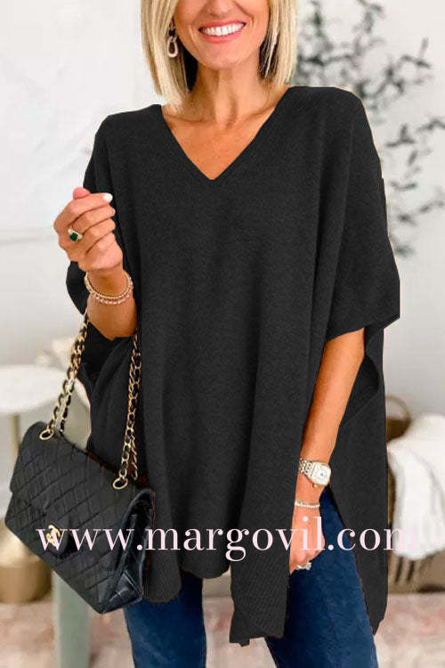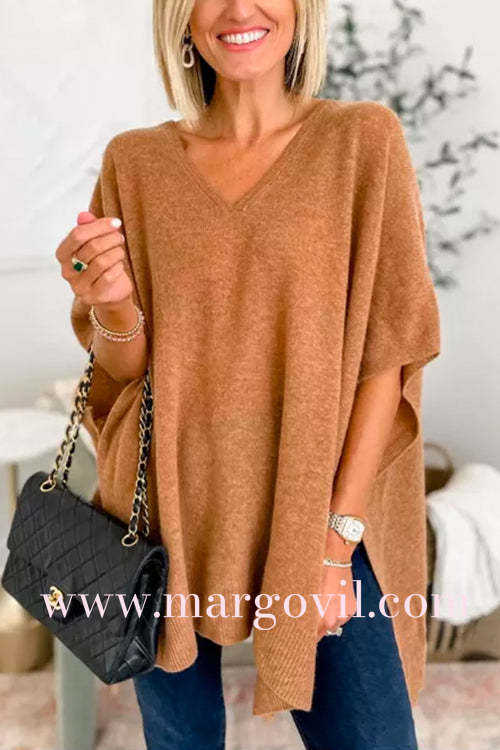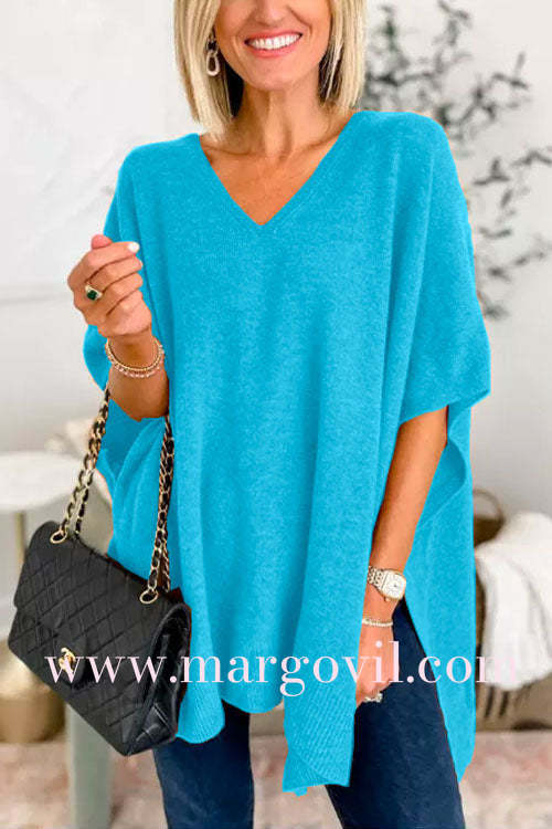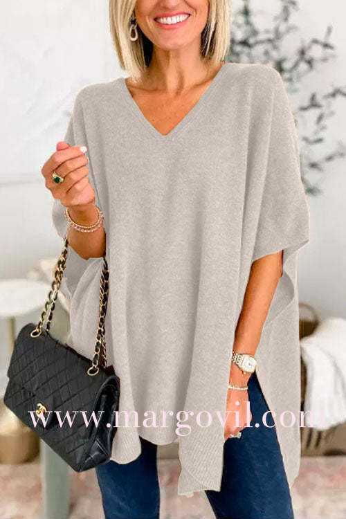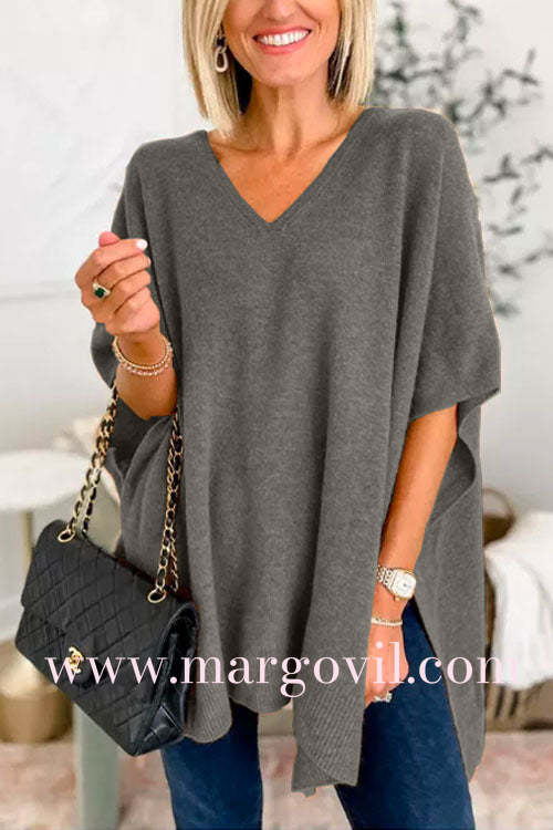 Chicest V Neck Loose Fit Solid Poncho Sweater