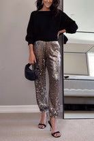 Show off your style in these sparkling Glam High Rise Sequin Joggers. With a contemporary design made of shimmering sequin fabric, these joggers offer perfect comfort and shimmering flair. Make a statement and add glam to your wardrobe.
