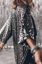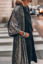 Margovil 3/4 Sleeves Open Front Sequin Shinny Midi Cardigan