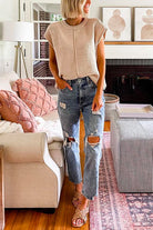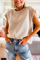 Margovil Crewneck Cap Sleeves Pullover Sweater