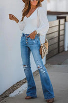 Margovil High Waist Buttons Ripped Bell Bottom Jeans