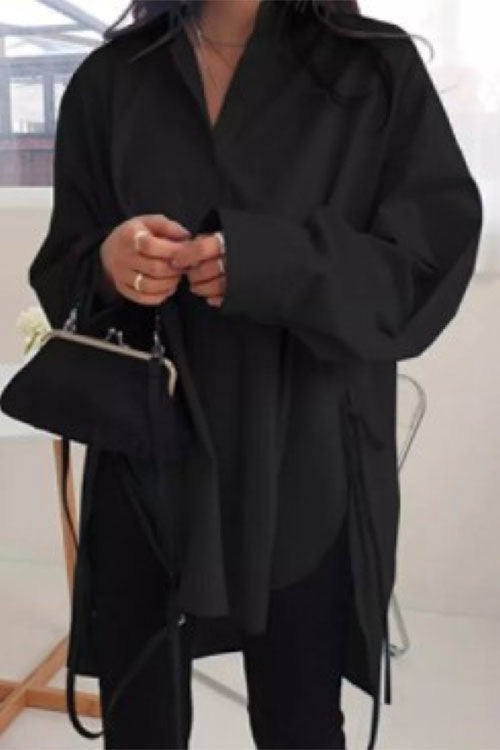 Margovil Irregular Lapel Button Down Long Sleeve Shirt