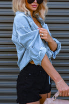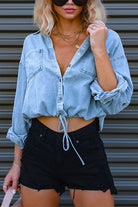 Margovil Long Sleeves Drawstring Hem Cropped Denim Shirt