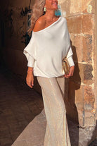 Margovil Off Shoulder Batwing Long Sleeve Sweater