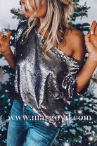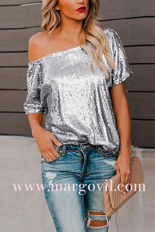 Margovil Off Shoulder Short Sleeve Sequin T-shirt