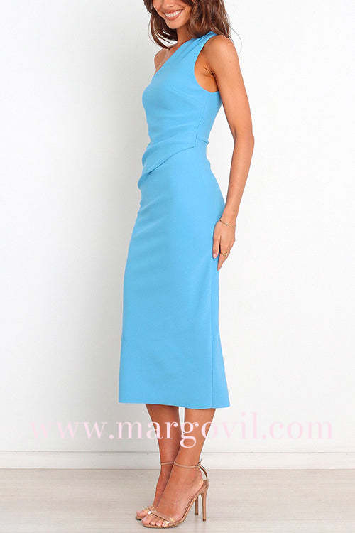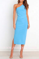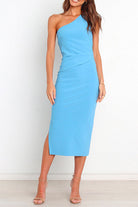 Margovil One Shoulder Sleeveless Side Split Ruched Midi Dress