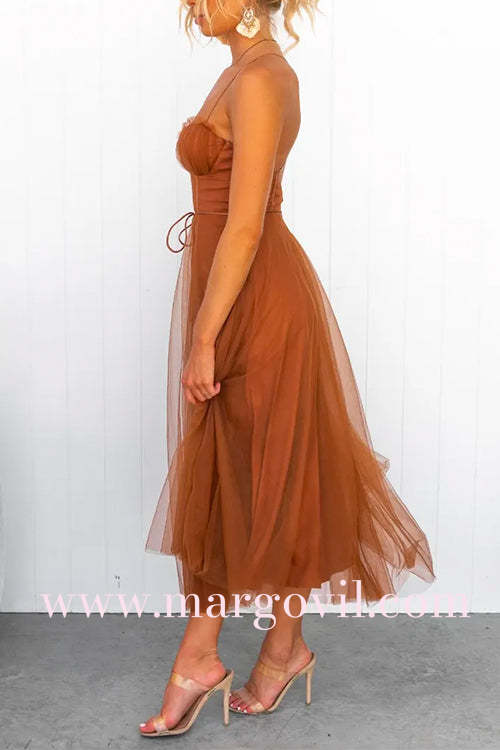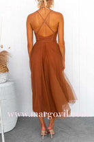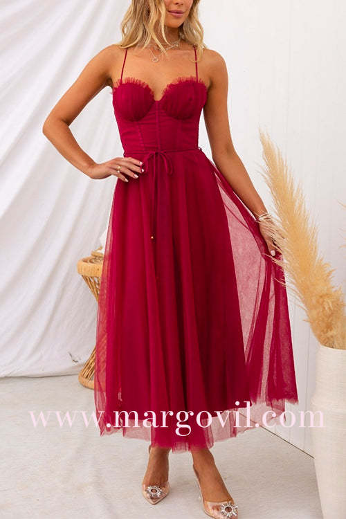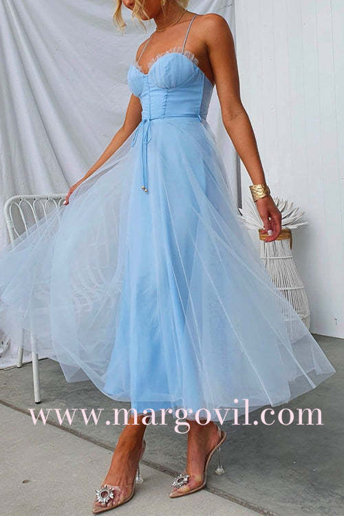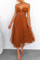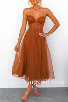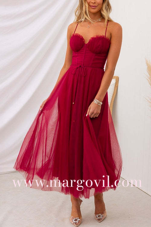 Margovil Open Back Waisted Swing Maxi Cami Tulle Dress