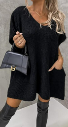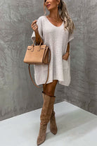 Be inspired with Margovil' Oversized V Neck Short Sleeves Pocketed Poncho Sweater! Enjoy both stylistic and practical features in one piece: an oversized V-neck that flatters and slimming pockets for on-the-go storage. Stay comfortable and fashionable with this one-of-a-kind poncho sweater!