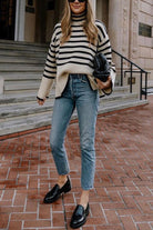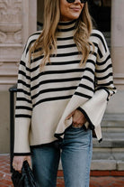 Margovil Striped Tuetleneck Side Split Pullover Sweater