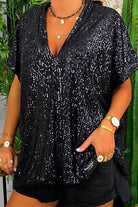 Margovil Stylish V Neck Short Sleeve Sequin T Shirt