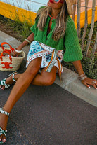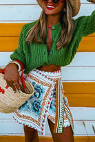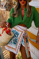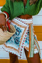 Margovil Unique Floral Printed Tie Waist Wrapped Mini Skirt