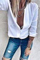 Margovil V Neck Long Sleeves Chiffon Blouse Shirt