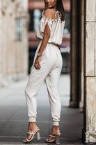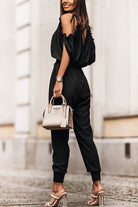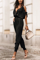 Margovil Wrap V Neck Cold Shoulder Elastic Waist Jogger Jumpsuit