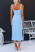 A game-changer in any wardrobe. This stunning square collar midi cami dress is cut to hug your curves for a perfectly flattering look. The high slit adds a unique hint of glamour that lets you make a bold statement wherever you go. Intensify your style and make heads turn!
