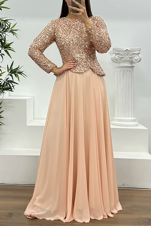 Boat Neck Long Sleeves Watercolor Print Maxi Dress