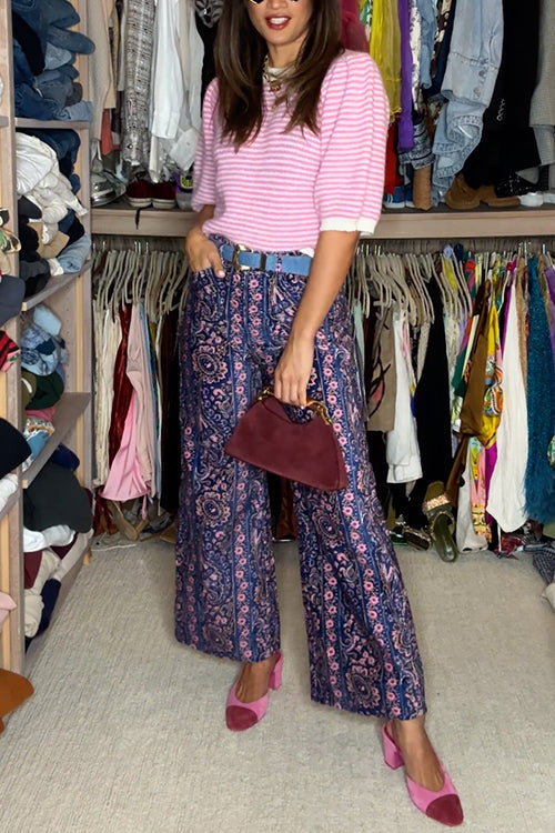 High Waist Paisley Print Pocketed Wide Leg Pants