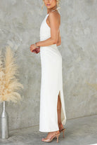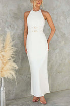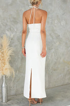 Halter Sleeveless Back Slit Waisted Maxi Dress
