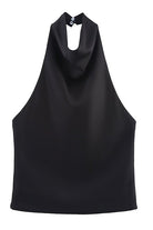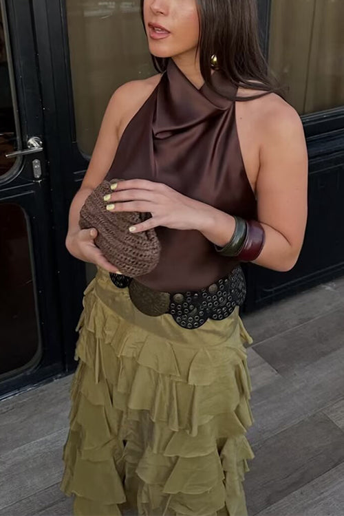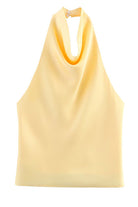 Margovil Chic Halter Cowl Neck Sleeveless Satin Top