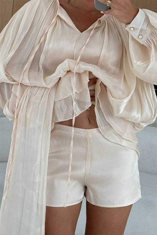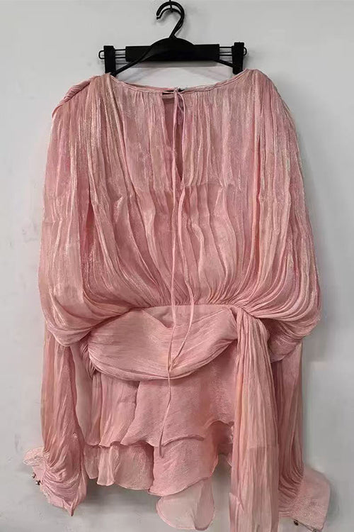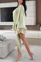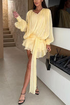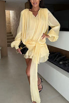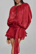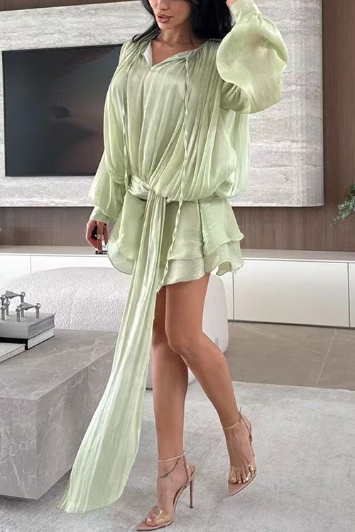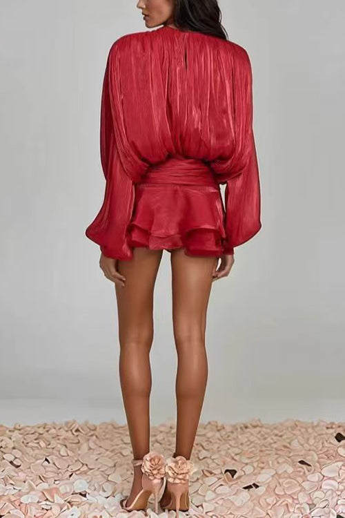 Margovil Lantern Long Sleeves Draped Ruffle Layered Mini Dress with Shorts