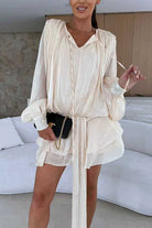 Elevate your wardrobe with this versatile Margovil Lantern Long Sleeves Draped Ruffle Layered Mini Dress with Shorts. Crafted from a comfortable cotton-polyester blend, this piece features elegant draped details and romantic ruffled layers that create dimension and movement. The long sleeves provide coverage while the mini silhouette keeps things playful and modern. Paired with coordinating shorts, this two-in-one ensemble offers styling flexibility for casual outings or dressed-up occasions. Available in sizes S-XL with detailed measurements to ensure the perfect fit.