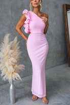 Margovil Frill One Shoulder Cut Out Bodycon Maxi Dress
