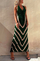 Margovil Halter V Neck Ruffle Drape Front Printed Maxi Dress