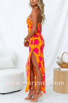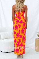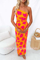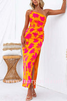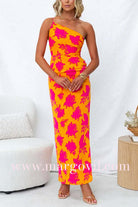 Margovil One Shoulder Side Split Printed Cami Maxi Dress