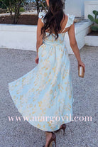 Look retro and fabulous in Margovil's Ruffled Shoulder Bow Knot Waist Slit Printed Vintage Party Dress. With a flattering waist knot and shoulder ruffles, this dress is sure to turn heads! Enjoy the pretty print and flowy skirt with delicate slits for a timeless look. Live your best life in this gorgeous dress!