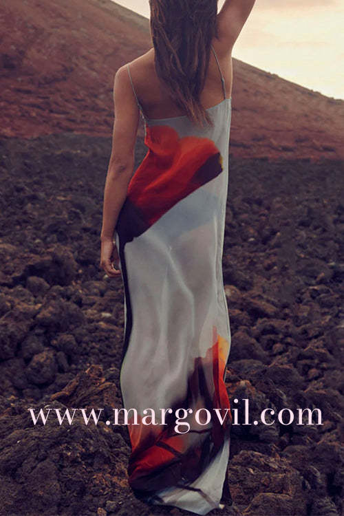 Margovil Spaghetti Strap Floral Print Maxi Beach Dress