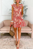 • Experience the ultimate combination of style and comfort with our V Neck Layered Ruffle Sleeves Printed A-line Dress. The V-neck design and layered ruffle sleeves create a flattering silhouette, while the printed pattern adds a touch of elegance. Perfect for any occasion, this dress will make you feel confident and sophisticated.