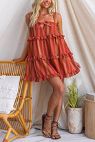 Adjustable strap Bow Detail Striped Ruffle Mini Dress