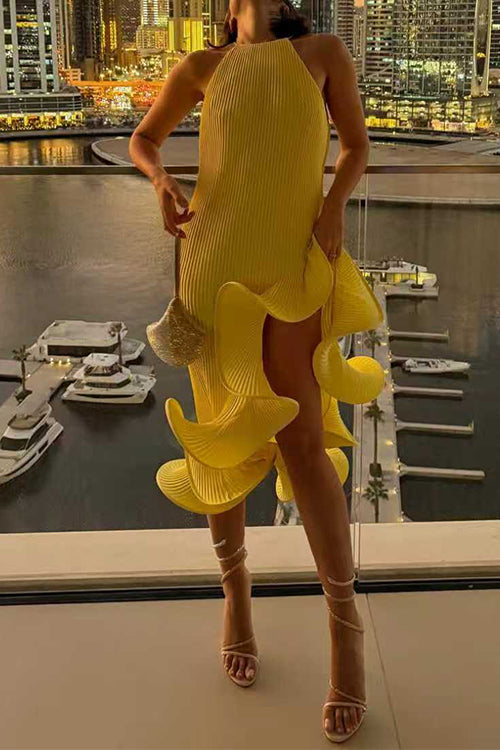 Margovil Sleeveless Irregular Ruffle Hem Midi Dress