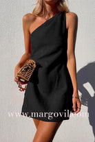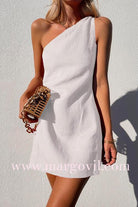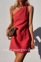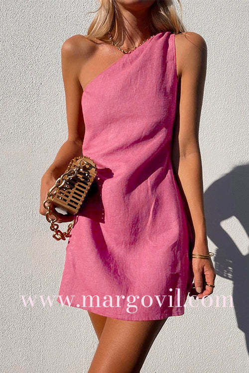 Margovil One Shoulder Solid Cotton Linen Mini Dress