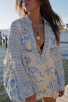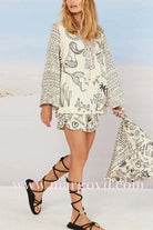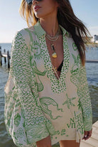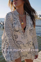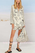Margovil Collared V Neck Shirt and Side Slit Shorts Vitamin Sea Print Set