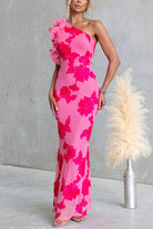 Chic Ruffle One Shoulder Sleeveless Floral Mesh Maxi Dress