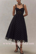 Elevate your wardrobe with the Margovil V Neck Mesh Polka Dot A-line Midi Cami Dress. Featuring a flattering V-neckline and delicate mesh fabric adorned with classic polka dots, this dress offers a playful yet elegant look. The A-line silhouette ensures a comfortable fit that flatters every figure, making it perfect for daytime events or evening outings. Step out with confidence and charm in this timeless midi dress.