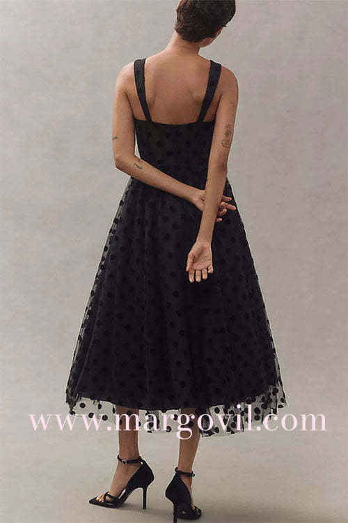 Margovil V Neck Mesh Polka Dot A-line Midi Cami Dress